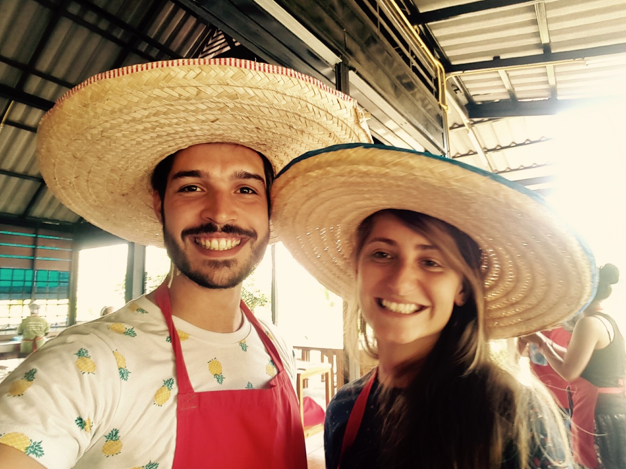 De retour en Thaïlande après 12 heures de bus et nous sommes ravis ! Nous retrouvons nos marques dans cette ville du Nord où nous étions passés il y a quelques semaines et décidons de reprendre des forces avant le gros trajet pour le Laos (18 heures de bus de nouveau, de jour et de nuit). Nous occupons ces deux jours à faire du shopping = aller chez Décathlon pour renouveler quelques tee-shirt et investir dans des chaussures de marche ouvertes (la grande classe) et à suivre un super cours de cuisine ! On s’est régalés (de 10h à 15h) et on a appris plein de choses, nous sommes bien contents d’avoir pris le temps de le faire.