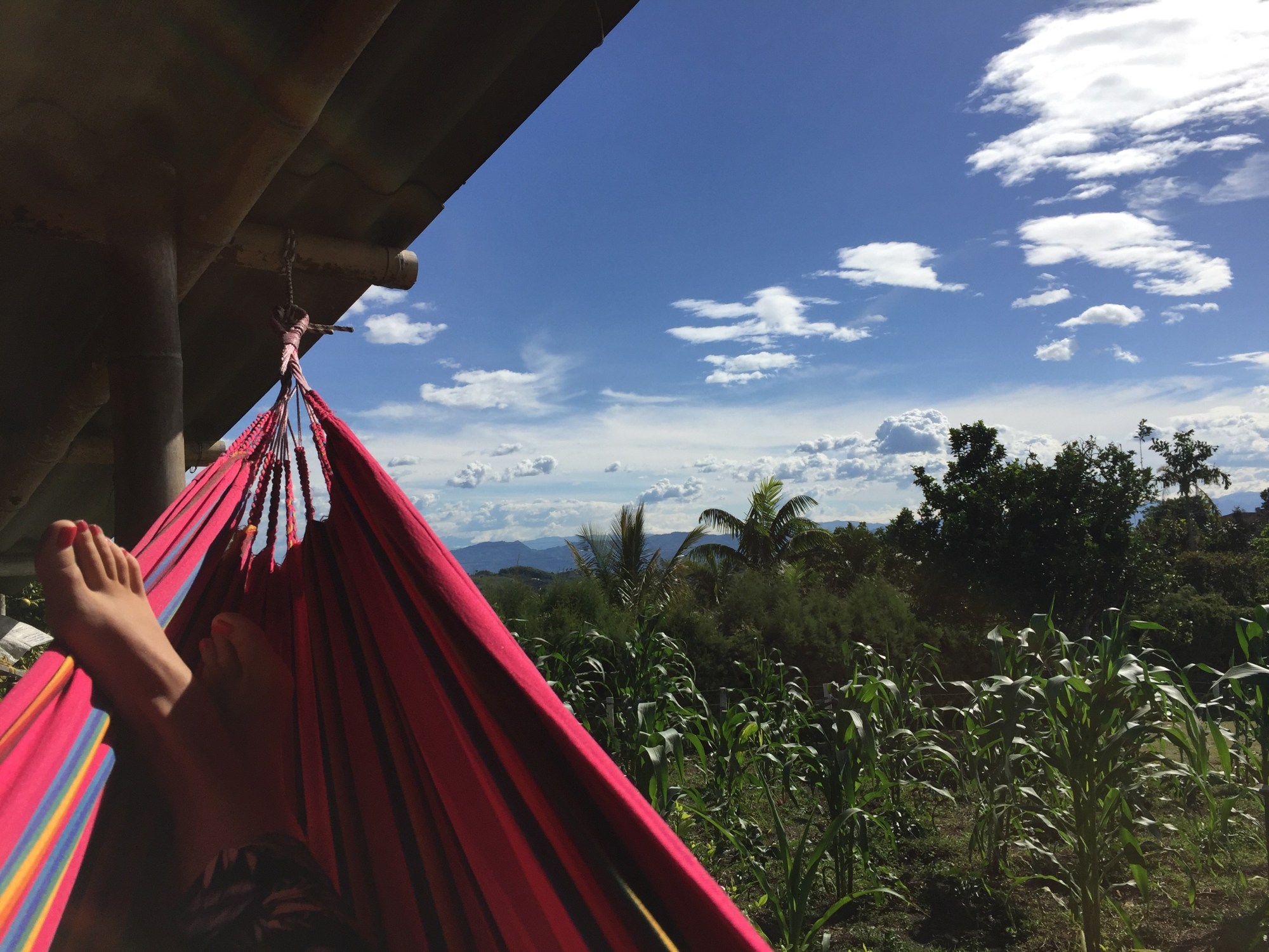 Les premiers jours nous nous laissons prendre par le lieu, repos, hamac et bavardage avec nos hôtes. Le troisième jour nous partons une journée pour randonner à Valle de Cocora, à environ 1 heure de route. C’est Pedro conducteur de Jeep qui se chargera de nous emmener et nous rencontrons son fils Santiago avec qui nous passons l’aller-retour.